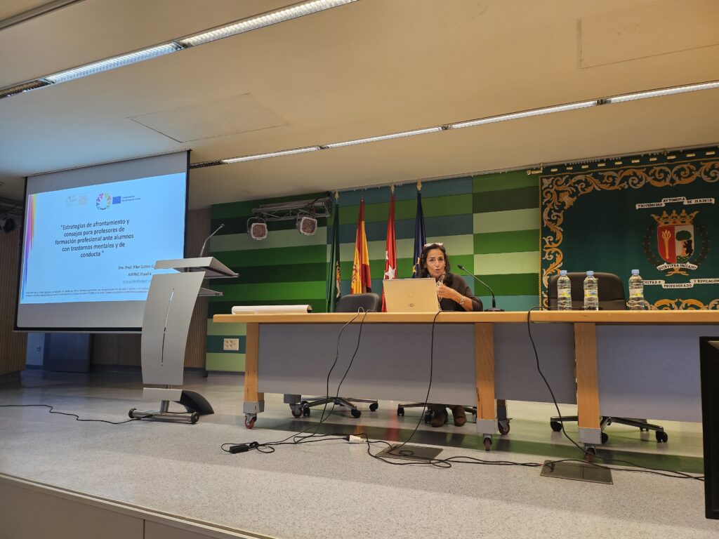 Prof. PhD Pilar Gutiez Cuevas – President of the Madrid Association for Early Childhood Intervention presented the Spanish situation of the mental health prevention at schools as being Spanish partner in the STOPSY project. She presented the pilot implementation outcomes and the integration of the project results into the Municipality of Madrid annual strategy for mental health resilience.